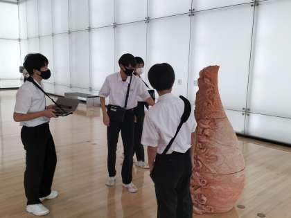 美術館では、開館以来初の試みとなるタブレットを使っての鑑賞学習です。気に入った作品をタブレットで写真に収め、コメントを添えてどんどん仲間に発信していきます。