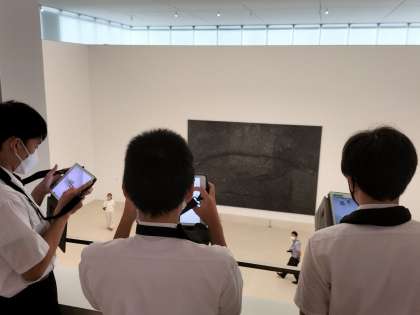 美術館では、開館以来初の試みとなるタブレットを使っての鑑賞学習です。気に入った作品をタブレットで写真に収め、コメントを添えてどんどん仲間に発信していきます。