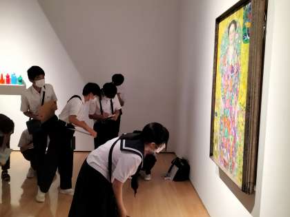 美術館では、開館以来初の試みとなるタブレットを使っての鑑賞学習です。気に入った作品をタブレットで写真に収め、コメントを添えてどんどん仲間に発信していきます。