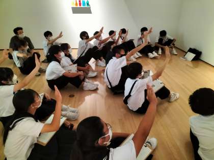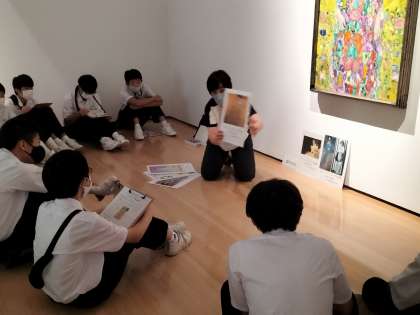 美術館では、開館以来初の試みとなるタブレットを使っての鑑賞学習です。気に入った作品をタブレットで写真に収め、コメントを添えてどんどん仲間に発信していきます。