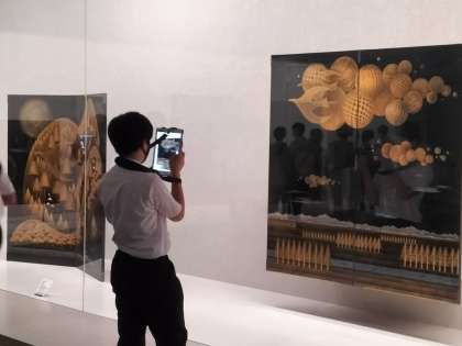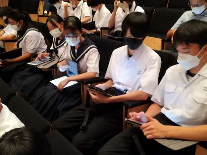 美術館では、開館以来初の試みとなるタブレットを使っての鑑賞学習です。気に入った作品をタブレットで写真に収め、コメントを添えてどんどん仲間に発信していきます。
