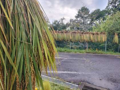 刈り取ったすべての稲を運び終えると、「雨が降るまで、もち米の稲ももう少し刈っておくわ!」と疲れを全く見せず、作業を再開。