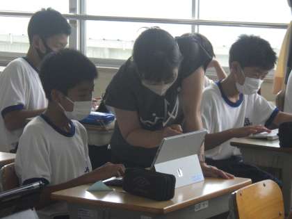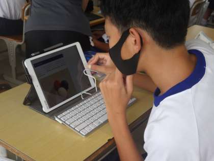 これから学習に取り組む「ボッチャ」についての調べ学習です。スポーツの歴史やルール、どんな人々が取り組んでいるのかなど、タブレットを使って細かく調べ、レポートを作成していきます。この活動のあと、いよいよボッチャに挑戦です。