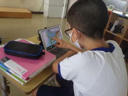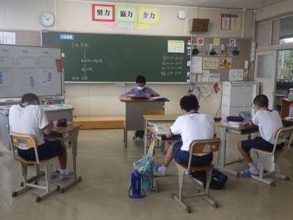 学習課題は、前期期末テストに向けての勉強とありましたが、まずはこれまで行ってきた授業の進め方を思い出すために、タブレットを使った地図パズルに取り組んでいました。生徒も教科担任も必死に取り組んでいます。
