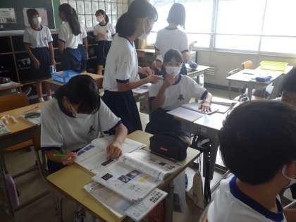 前期期末テストに向けての学習が進められていました。夏休み中に各自で学習してきたことを、仲間とともに確認し合っています。中には教科担任に質問やアドバイスを求める生徒も。