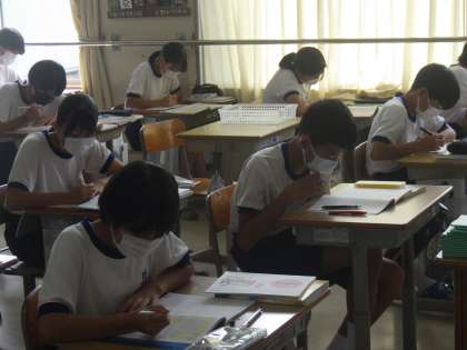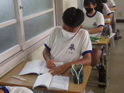 9/2 まずは問題に慣れよう! 公開日 2022/09/03 更新日 2022/09/03 各学年から 2年生の国語の授業の様子です。 前期期末テストの向けての学習が進められていました。ことばのきまりや漢字など覚えなければならないことがある一方、答えの見つけ方も身につけていきます。繰り返しの暗記学習より、問題にたくさんあたって慣れていくことを重点において学習している生徒が多くいました。