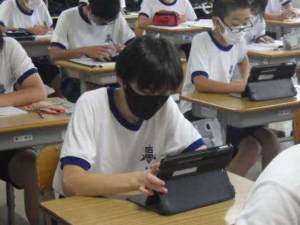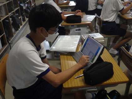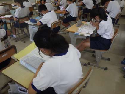 これまでの学校生活や様々な活動を振り返っていました。前期の締めくくりと後期の新しい学級組織づくりに向けての活動です。