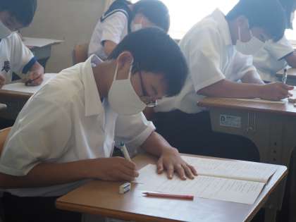 必死にテストに向かう1年生の様子です。