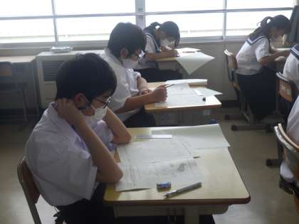 前期期末テスト最終日。1年生のテストの様子です。