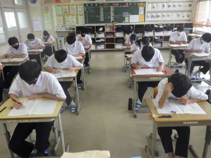 前期期末テスト最終日。3年生のテストの様子です。