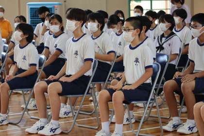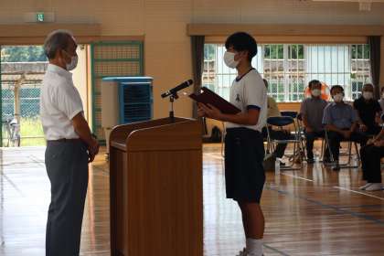 また、全校を代表して3年生徒より、「地域の防災の担い手となり、災害時に積極的に活動できるよう、防災の知識と活動の仕方を勉強しながら、地域の方々と協力して取り組んでいけるよう、頑張ります!」と力強い決意の言葉が述べられました。