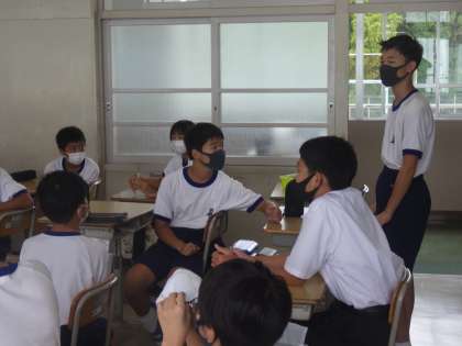後期の学級組織決めを行っていました。委員会や教科委員など、集団生活で必要な活動の担当者を決めていきます。前期に経験した生徒の話を聞き、自身の興味や関心があり、自分を生かせそうな係に立候補していきます。