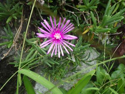 春から夏にかけて咲くマツバギク。最近はあまり見かけなくなったので、そろそろ季節も秋に近づいたのかなと思っていました。しかし、校舎の片隅に咲いているマツバギクの花を見つけました。