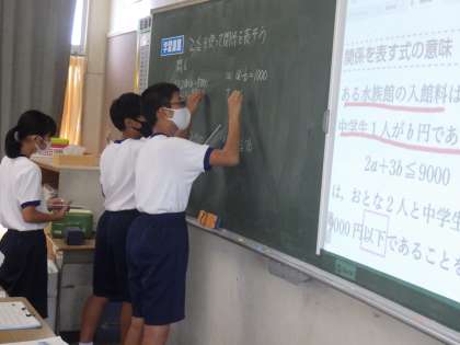 問題文から式をつくる、式から問題に意味を考える…。双方向からの学習で、文字を使った問題の理解を深めていました。