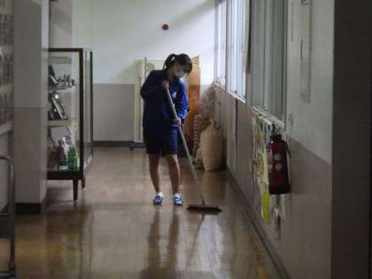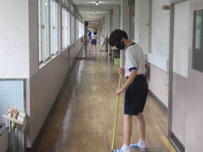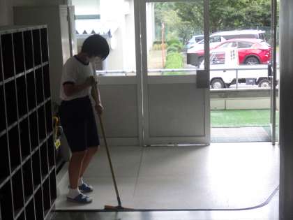 通常、3年生が担当している職員室前廊下や来客用玄関、そして3年生の昇降口を2年生が手分けし、掃除を行ってくれました。