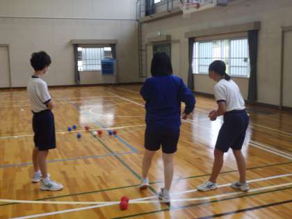 ボッチャのチーム対抗戦が行われていました。技能も作戦も随分レベルが上がり、試合も白熱しています。そのため、勝ったときやナイスプレーが出たときの喜びも爆発。一投一投に力がこもっている感じが伝わってきます。