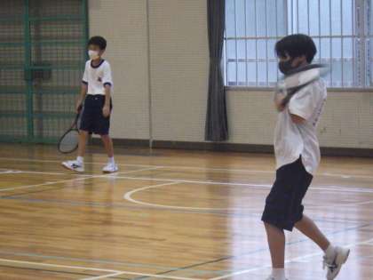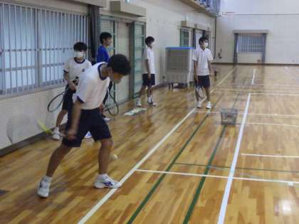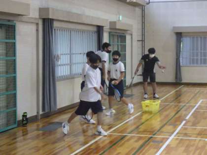 悪天候のため場所を体育館に移して、練習が行われていました。また、活動量を確保するため、久しぶりに男女別での練習です。