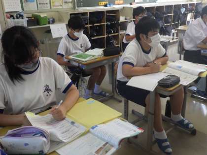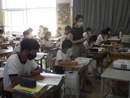 「自分の思いや考えを伝える」を課題として学習が進められていました。リーディングの声も大きく、非常にテンポの良い授業でした。