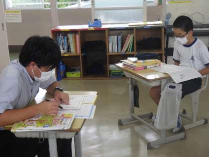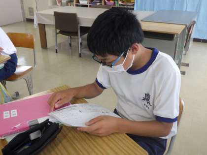 「ていねいな言葉で伝えよう」をテーマに学習が進められていました。必要な情報を伝える場面や相手を考えながら、自分なりに工夫したところを発表し合っていきます。全員が自分の考えをもち、それでいて仲間の考えにも興味を示す様子に感心しました。