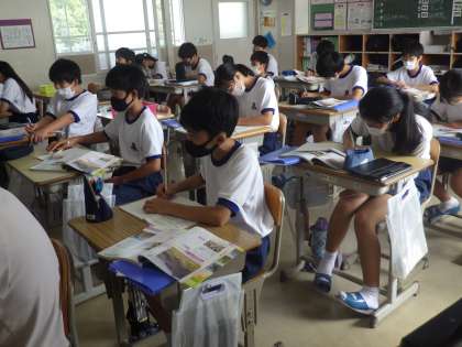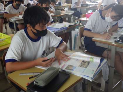 「標高の高い土地に暮らす人々」について学んでいました。やはり映像の威力はスゴく、教科書や資料集では読み取れないところまで学習を深めることができます。これまでの知識と想像を映像で確認しながら、答えを導き出し、発見したことを発表していきます。