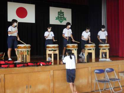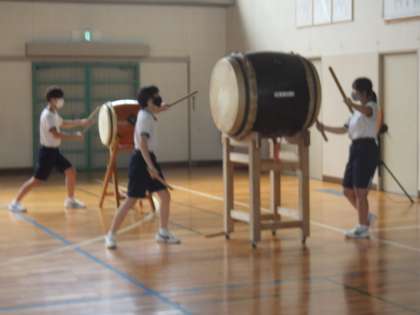 体育館での体育の授業を終えた2年生。その中でも勘八太鼓のメンバーはそのまま体育館に残り、自主練習を始めていました。