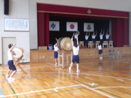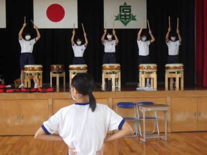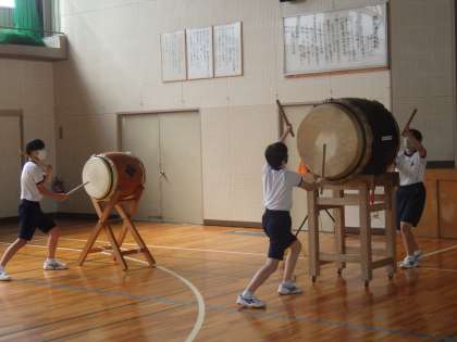 体育館での体育の授業を終えた2年生。その中でも勘八太鼓のメンバーはそのまま体育館に残り、自主練習を始めていました。