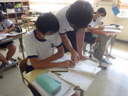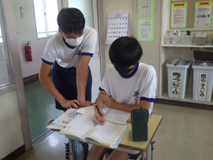 2週間後に学習診断テストを控えている3年生。苦手部分の克服のために、仲間や船影たちからアドバイスをもらって学習を進めていました。