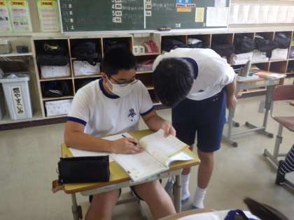 2週間後に学習診断テストを控えている3年生。苦手部分の克服のために、仲間や船影たちからアドバイスをもらって学習を進めていました。