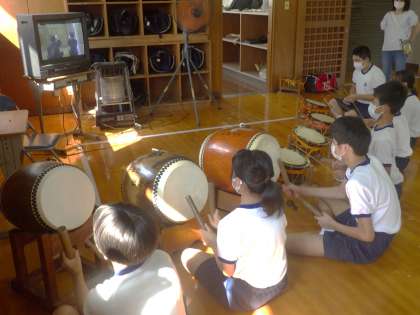 2週間ぶりに行われた全校アルペン(伝統芸能を学ぶ会)・「水神囃子」の様子です。全5回のうち、今回が2回目の会となります。