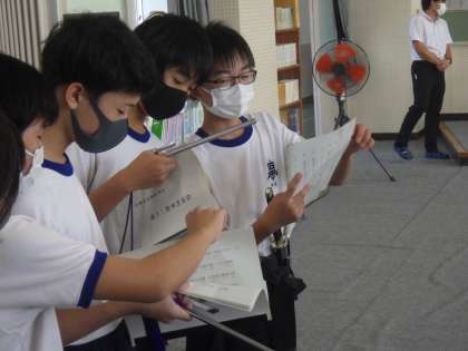 今日は衣装を身につけての練習です。台本を片手に、自分の出番が来るまでしっかりと読み込んでいます。また、2・3年生が声をかけ、待っている間も役ごとに自主練習が始まっていました。