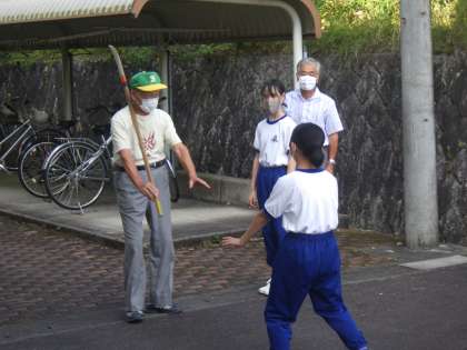 2週間ぶりに行われた全校アルペン(伝統芸能を学ぶ会)・「棒の手」の様子です。全5回のうち、今回が2回目の会となります。