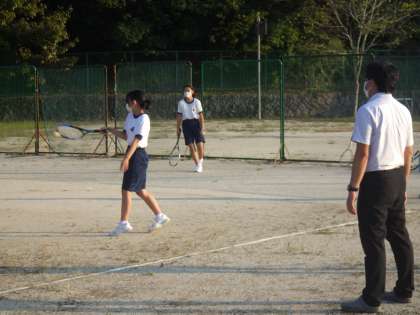 感心しているのが、練習時間を少しでも長くしようと、日中の放課にコート準備をしている2年生がいること。後輩と一緒に草取りをしたりする姿は、生徒の部活動に対する意識の高さを感じています。