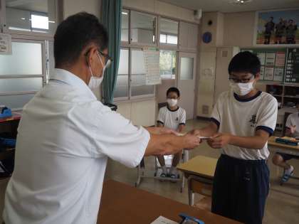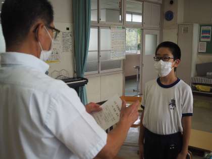 校長先生より、9月分の月間精勤賞の表彰が行われました。