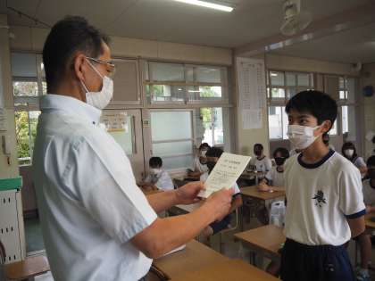 校長先生より、9月分の月間精勤賞の表彰が行われました。