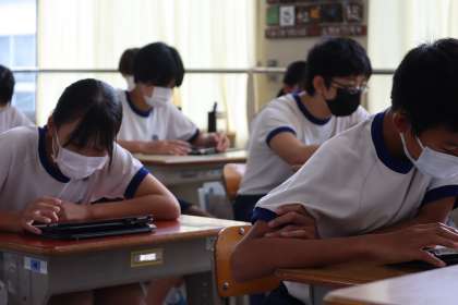 全員がタブレットに向かっていて驚きました。様子を聞いてみると、「『ランチ学習』を始めました!」とのこと。苦手な教科を克服するため、また、わからない問題をそのままにしないようにするために、学習の時間の設定がされたようです。