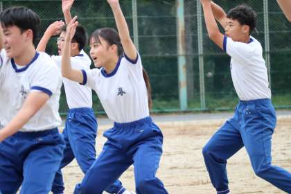 ふれあいまつり・石中祭の当日、生徒たちが発表するのは伝統芸能だけではありません。オープニングでは「ソーラン」、クロージングでは「群読」も披露します。