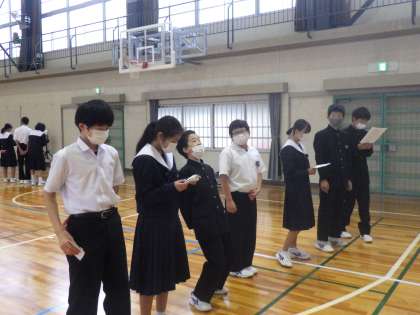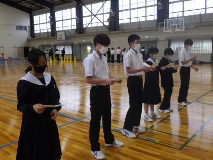 写真は、体育館で行われていた群読の朝練習の様子です。