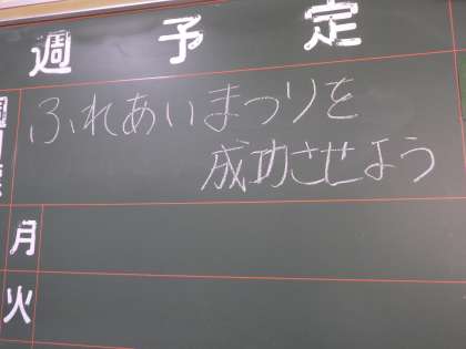 3年生の教室の黒板には「ふれあいまつりを成功させよう」と週目標が書かれています。石中生として最後のふれあいまつり。気持ちが文字に表れています。
