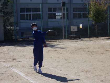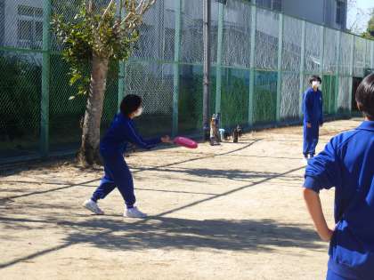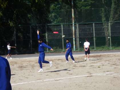 アルティメットの授業で、今日は技能試験が行われていました。上達してきたスローとキャッチを出来を評価してもらっています。緊張することなくのびのびと活動していた様子が印象的でした。