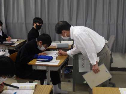 一次関数の演習問題に取り組んでいました。苦手を克服するために、一生懸命問題を解いていました。
