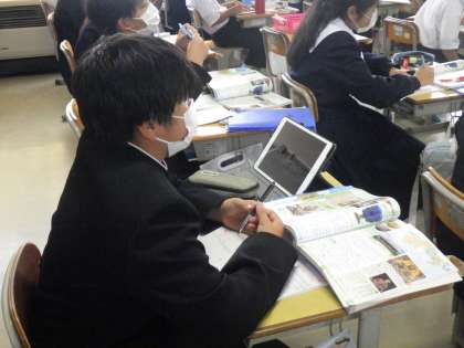 奈良時代の文化と日本の国づくりの関係について学んでいました。東大寺の大仏と仏教とのかかわり以外に病気がはやったという時代背景とのかかわりも探っていました。