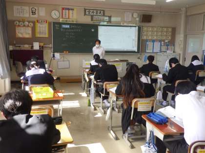 相似の証明の問題に取り組んでいました。相似になる条件を確認しつつ、どの条件を使って解いていくのかを証明のパターンと共に一緒に学んでいました。