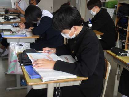 単元テストに向けての復習を行っていました。Qubenaを活用したり、これまでのプリントをやり直したりと、個人によって勉強の仕方は様々です。
