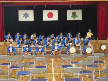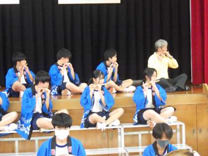 午後に行われてた全校アルペン(伝統芸能を学ぶ会)の最終回・水神囃子の活動の様子です。