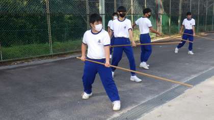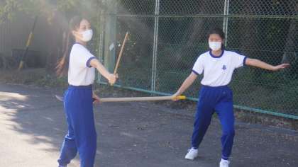 午後に行われてた全校アルペン(伝統芸能を学ぶ会)の最終回・棒の手の活動の様子です。