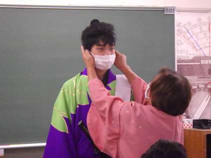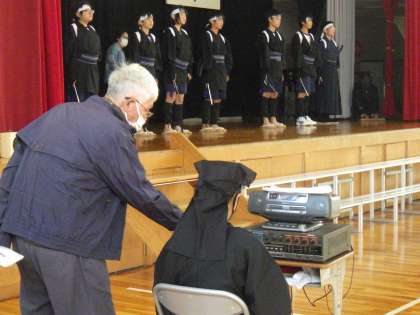 午後に行われてた全校アルペン(伝統芸能を学ぶ会)の最終回・石野歌舞伎の活動の様子です。