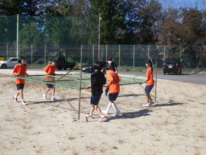 部活動が終わったソフトテニス部員は、明日の準備のためにさらにひと頑張りしてくれました。