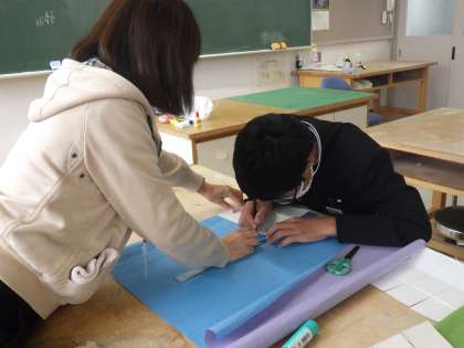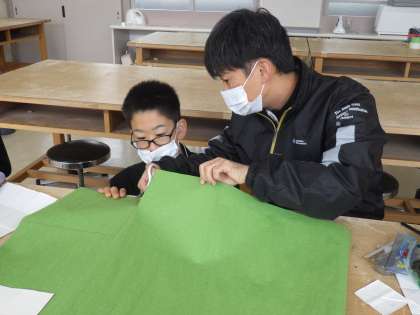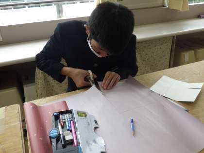 「環境に配慮した生活」について学ぶため、牛乳パックを使った小物入れの制作に取り組んでいました。