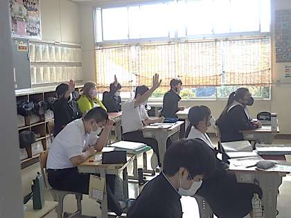 今後計画される保育実習に向けて、「幼児の生活と遊びの特徴を理解しよう」を課題に学習が進められていました。単に優しく接するといった漠然としたものではなく、どんな言葉かけや接し方が望ましいのかを具体的に考えていました。