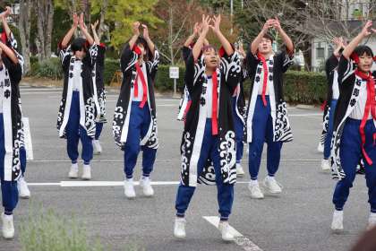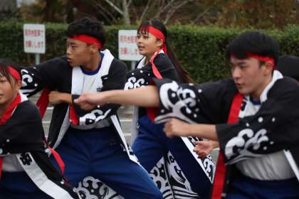 写真は、オープニングセレモニーで披露した「石中ソーラン」の様子です。